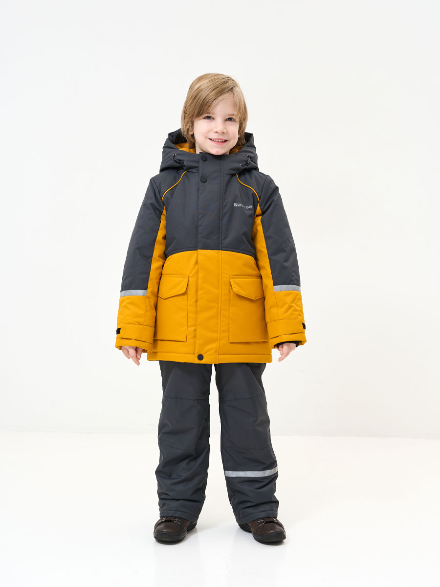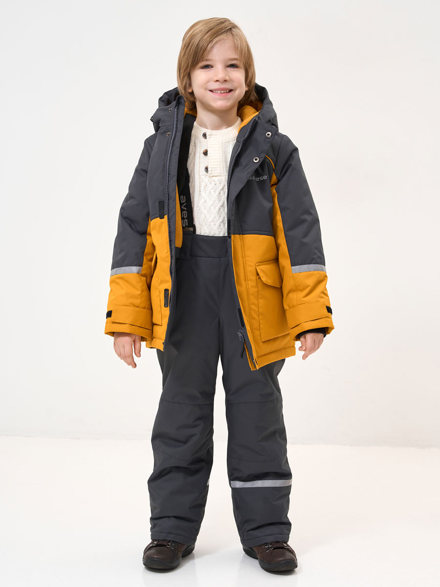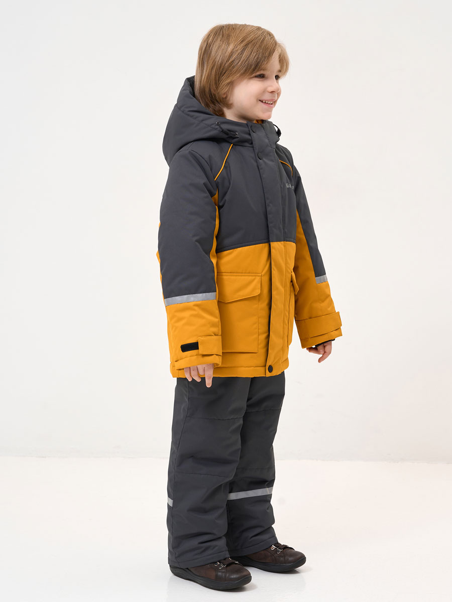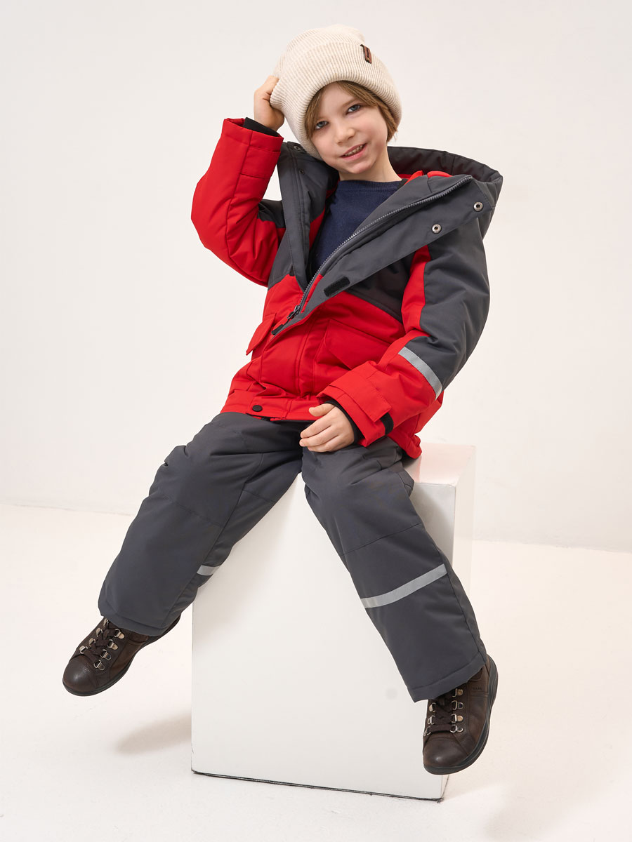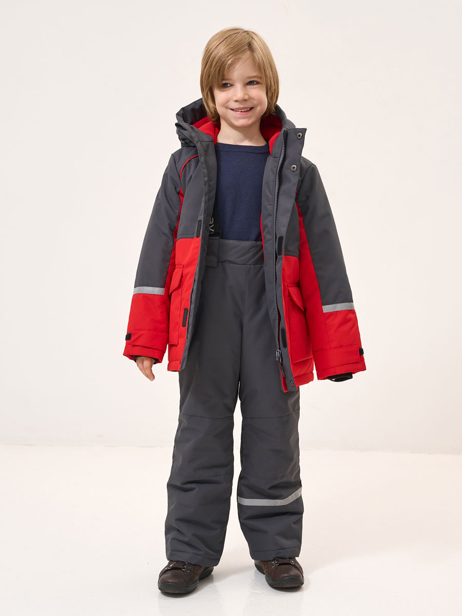 Брюки с отстегивающимися бретелями и спинкой. 2 прорезных кармана с листочками. Подкладка настегана на утеплитель. Пояс отрезной. Низ брюк прямой, с внутренней снегозащитной муфтой на стопорной резине. В костюме использованы светоотражающие элементы.